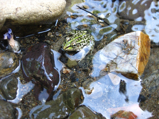 カエルがぴょこぴょこみぴょこぴょこという感じで、本当に3匹くらいのカエルがぴょこぴょこしとった!