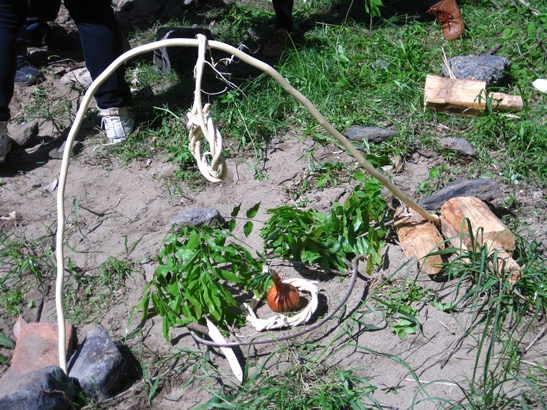 最初に木の棒や、大き目の意思で枝を叩いて樹皮を柔らかくしてむくのです。