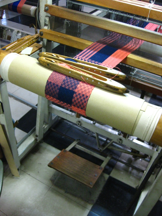 オペレーターの皆さんが丁寧に説明して周ってくれたので、少ない時間でも織り機の発展の仕方がとてもよく理解できたのですよ。