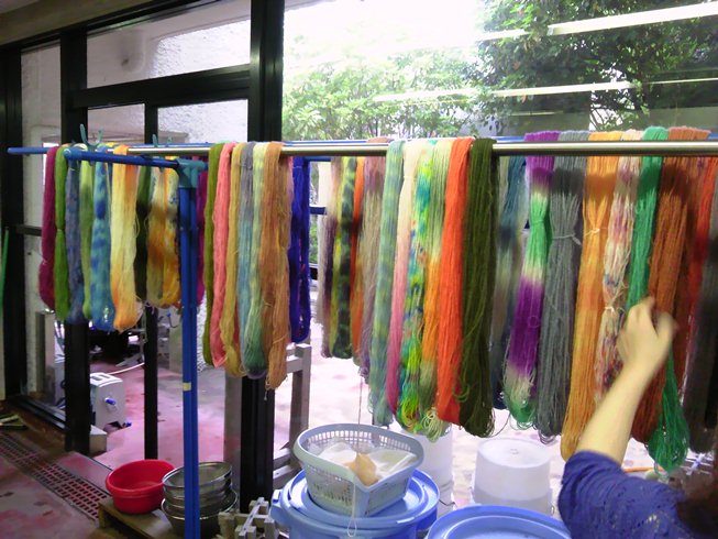 普段決して見る機会のない糸作りの工程や、業務用の大型の織り機、手作業でものづくりをする現場を
