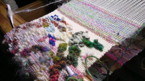 これはアリエッティ見たさに帰宅する前に織った白モヘア+先生からもらった意匠糸。