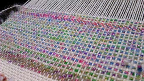 これが試し織りで機にかかっている状態。