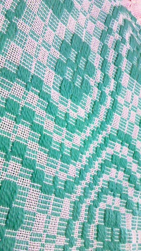 経糸の具合で緑の微妙な彩度の変化が出てるのよ