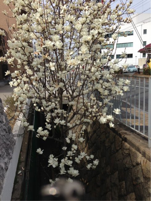 桜もちらほら咲き始め!これは多分こぶし?の花。