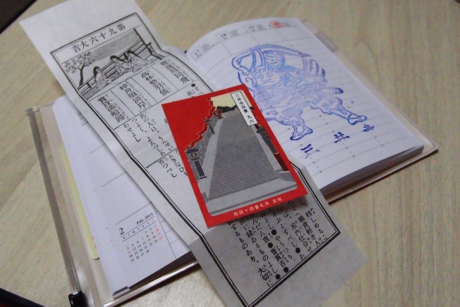他にもいっぱいおみくじ出来るところはあるんだけど、ここのは三井寺をモチーフした100種類の花札のようなデザインのカードがついてくる!額面にそれが飾られてるのを見て物欲に負けました