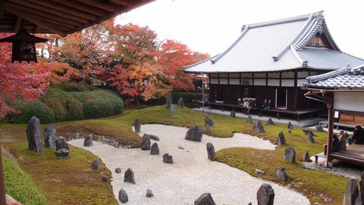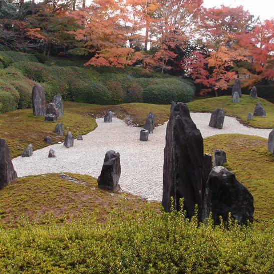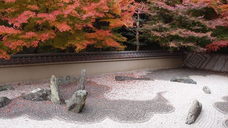 自宅に欲しいとは言わないけど、石庭って美しい。周りの植物の色もよく映える。