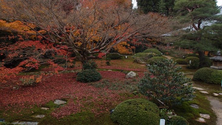 禅林寺は立派な一面もみじの地面。