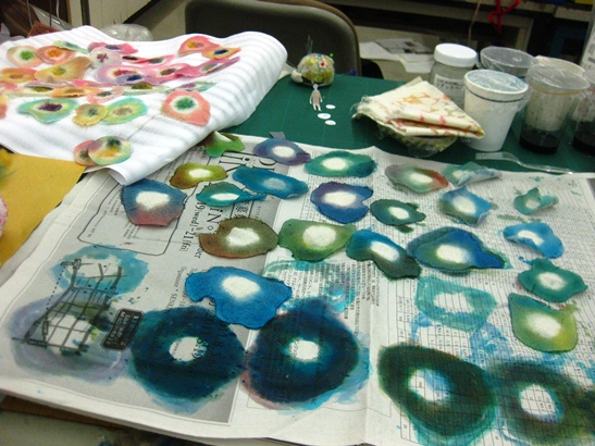さて学校ではグループ作業と染色作業と、プリントのデータ編集を行っています。