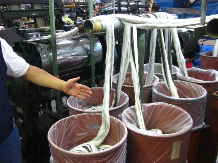 普段決して見る機会のない糸作りの工程や、業務用の大型の織り機、手作業でものづくりをする現場を