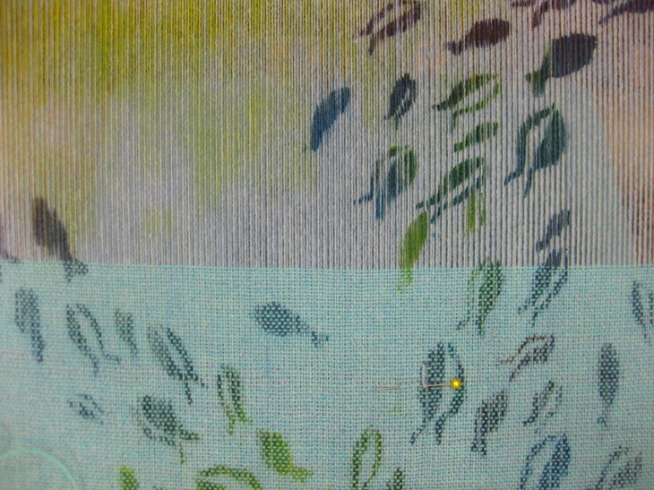 緯糸が入ったところがはっきり水色になってる部分ですね。
