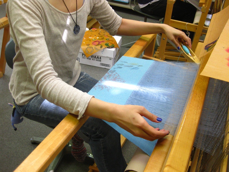 授業は薄物があり、ストールを織りあげました。